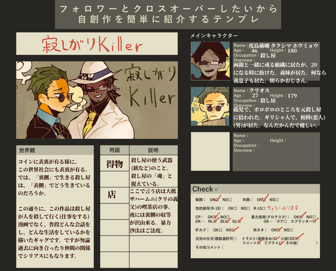 フォロワーとクロスオーバーしたいから自創作を簡単に紹介するテンプレのtwitterイラスト検索結果 古い順